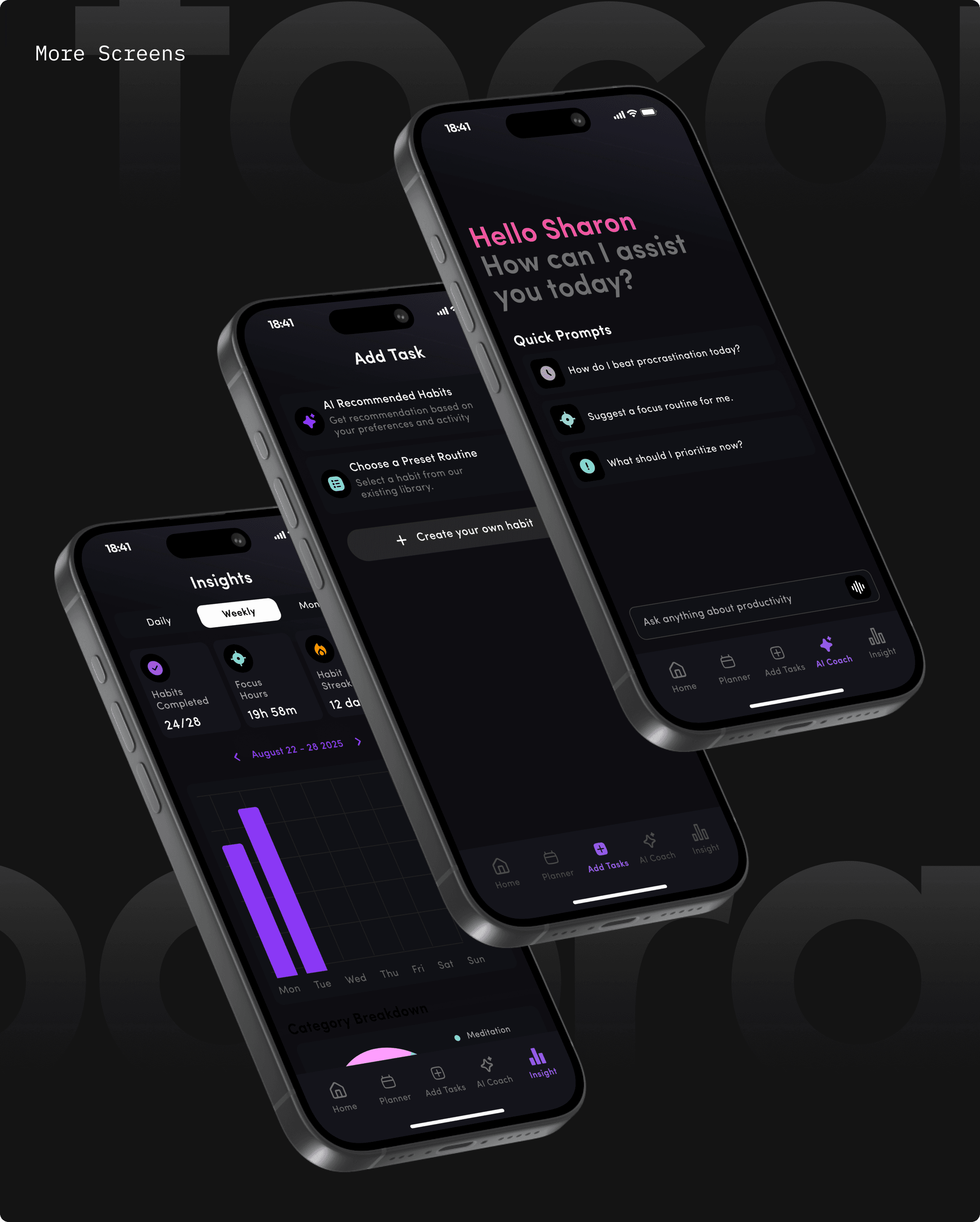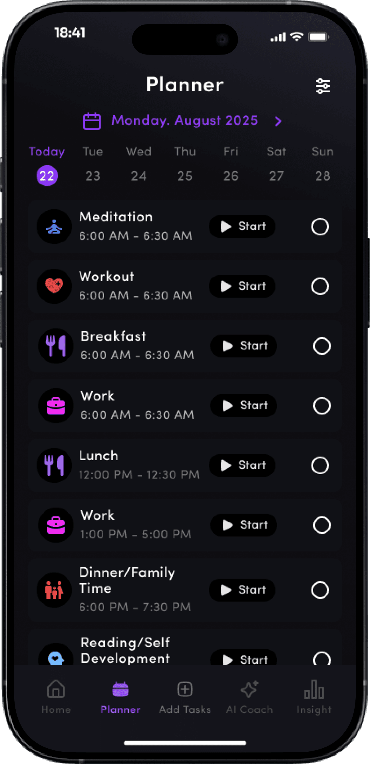 Users can instantly see their progress, priorities, and focus for the day without navigating multiple screens.