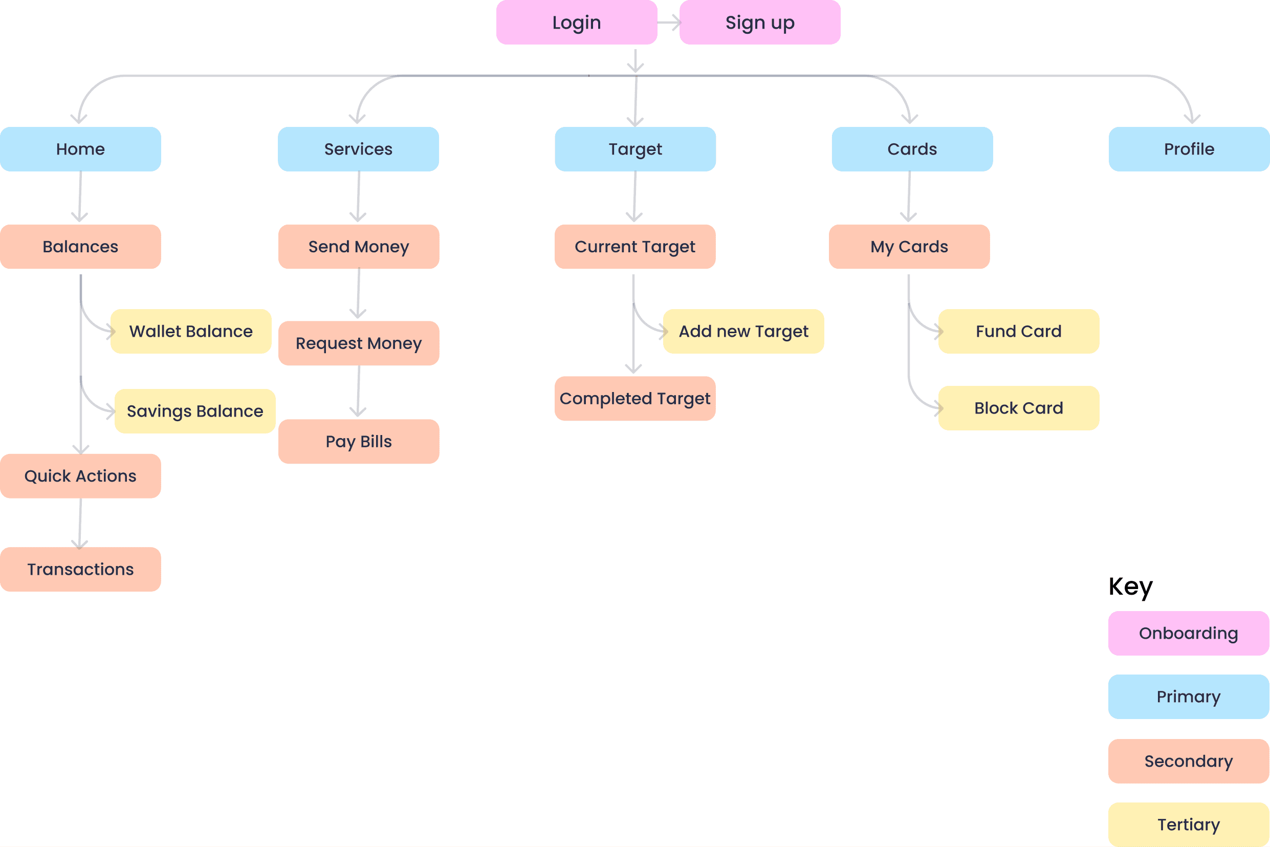 I created s a sitemap map to help me effectively create the app structure and make sure key features are accessible and intuitive.