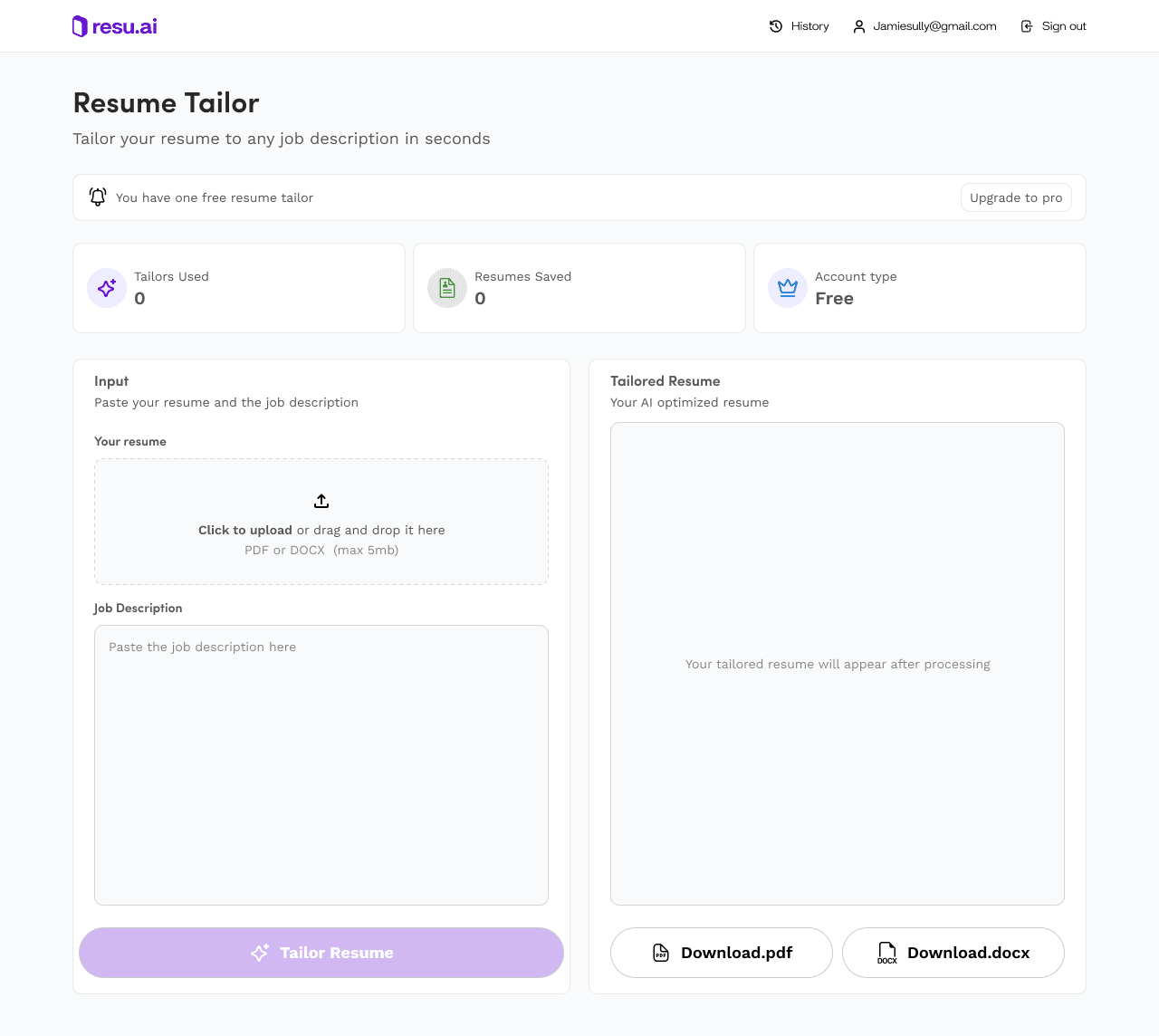 Helping job seekers Land interviews with AI-Powered tailored resumes.
